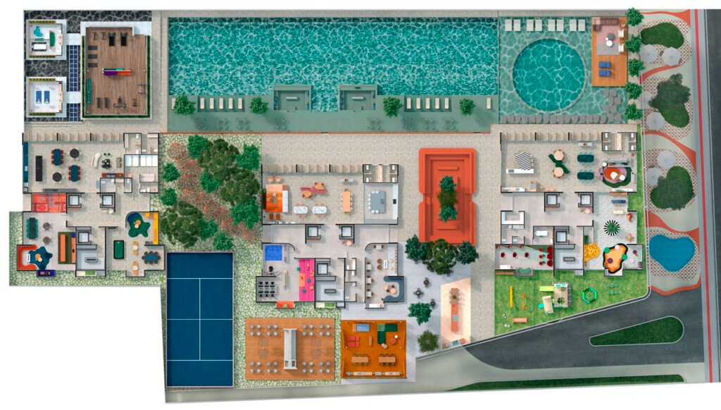 Com o propósito de transmitir acolhimento e conexão com a natureza, a CN Empreendimentos explorou cores, relevos e texturas. Fomentando a simplicidade e o minimalismo, com elementos de alta qualidade. Este projeto imponente e inovador traz até ao Brasil a fachada com tecnologia Windscreen da Hunter Douglas. Placas que se movimentam organicamente, respondendo às alterações do ambiente e simulando o movimento do oceano, sem demanda de uma fonte de energia.