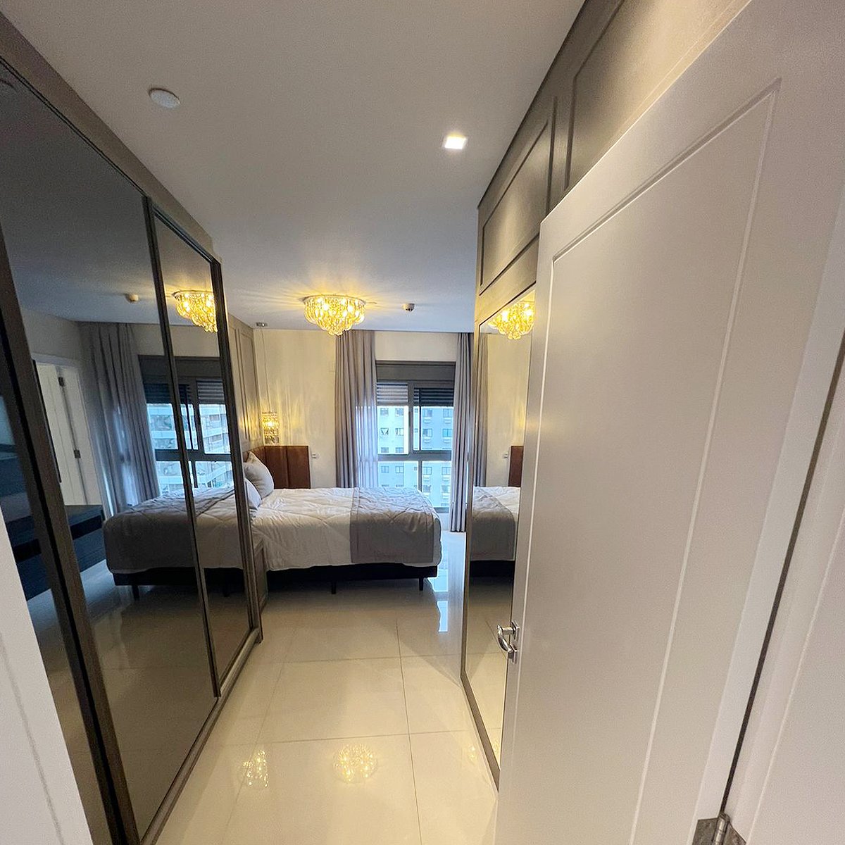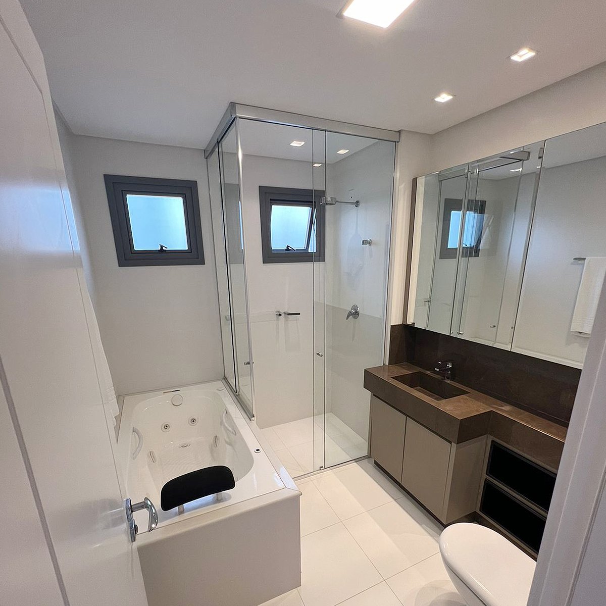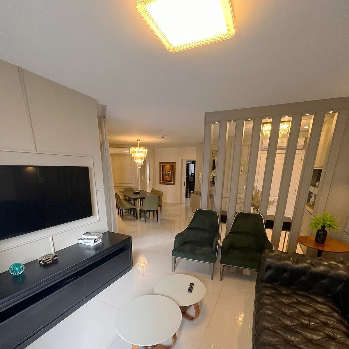 O Apartamento é mobiliado e oferece amplos 172 m² de área privativa 4 Suítes (1 com hidromassagem) ar condicionados nos ambientes e 4 vagas de garagem.
